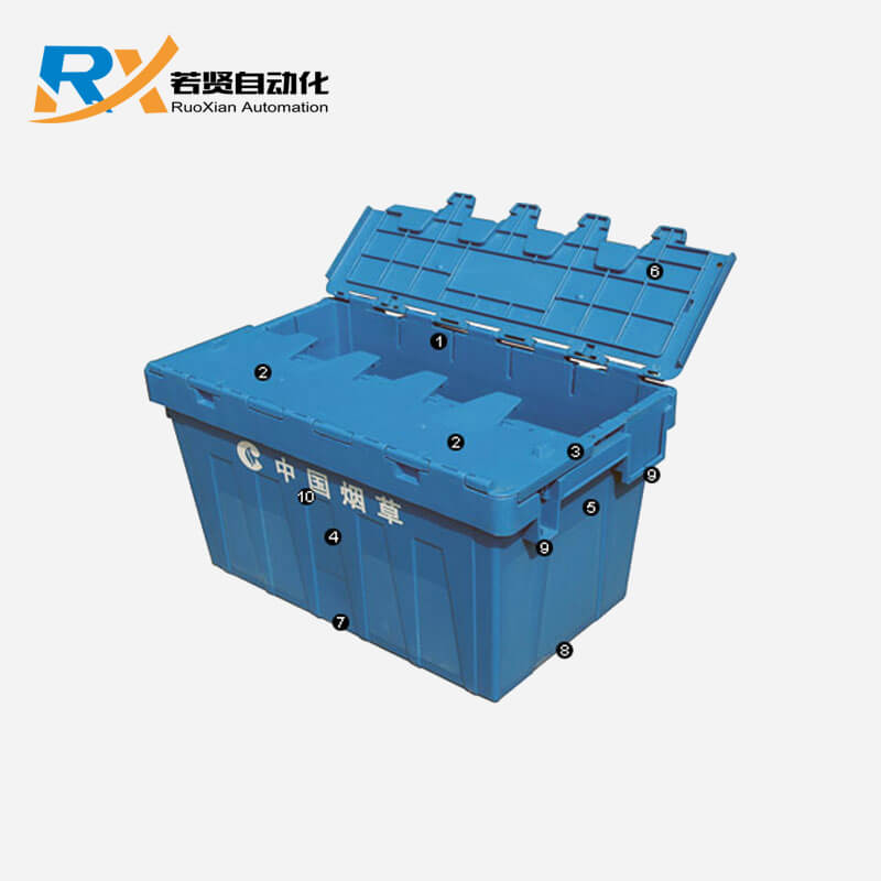 9. 短邊特別加強(qiáng)的堆垛點,大大提高了空箱的堆垛能力。設(shè)計有標(biāo)簽槽,可插標(biāo)簽,方便管理。